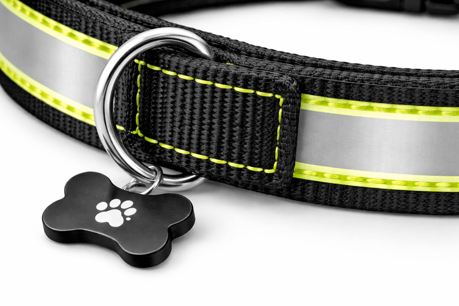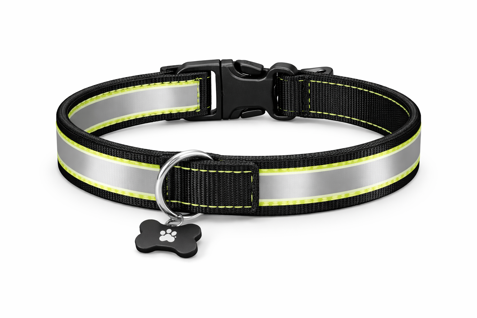 Ensure your dog’s safety and style with our Premium Reflective Dog Collar. Designed for comfort and visibility, this collar features highly reflective strips that make your pet easy to spot during nighttime walks, ensuring safety in low-light conditions. The durable nylon material and adjustable size make it suitable for dogs of all breeds and sizes, while the stylish bone charm adds a touch of flair.
